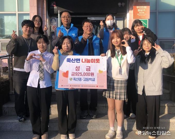 (중앙뉴스타임스 = 방재영 기자) 안성 죽산중·고등학교는 지난 2일 2025학년도 동아리박람회 수익금 전액인 925,000원을 죽산면 저소득층을 위해 죽산면지역사회보장협의체에 기탁했다.