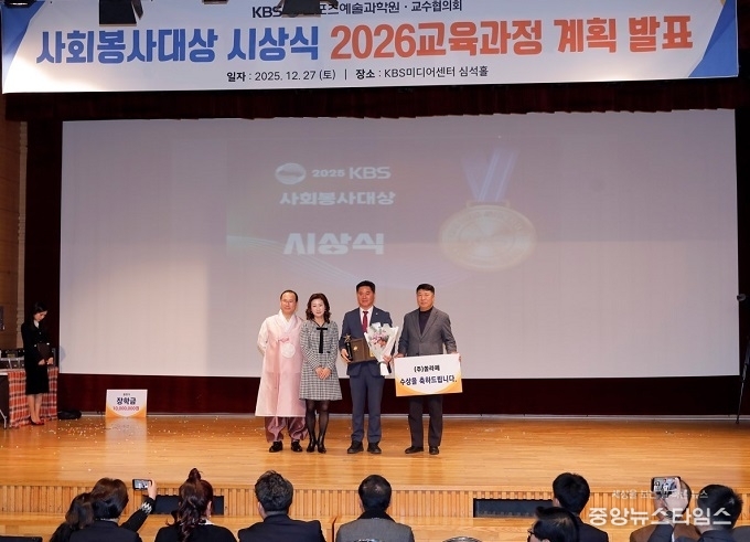 (중앙뉴스타임스 = 방재영 기자) 경기도의회 정하용 의원(국민의힘, 용인5)이 지난 12월 27일 서울 마포구 상암동 KBS미디어센터에서 열린 ‘2025 KBSP 교수협의회 송년회’에서 입법 및 의원연구활동 부문 ‘2025 사회봉사대상’을 수상했다고 5일 밝혔다.