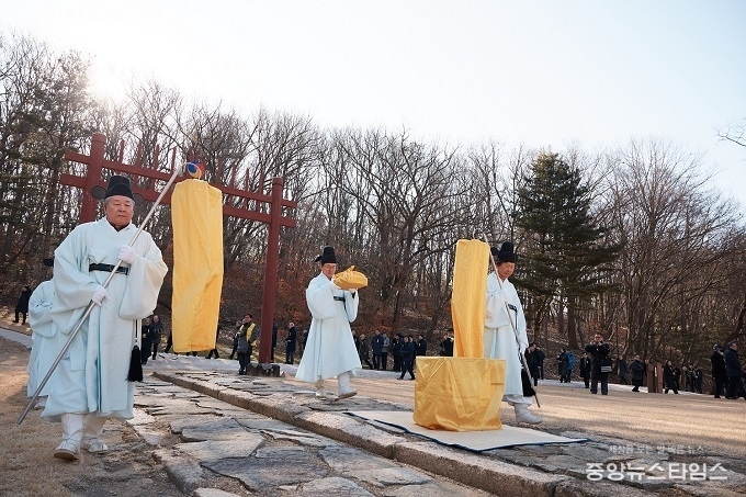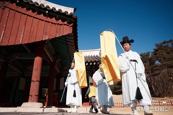 (중앙뉴스타임스 = 방재영 기자) 지난 6일 양주시 온릉에서 열린 기신제향에서 제관들이 엄숙한 예를 올리며 왕실 제례의 전통을 계승하고 있다.