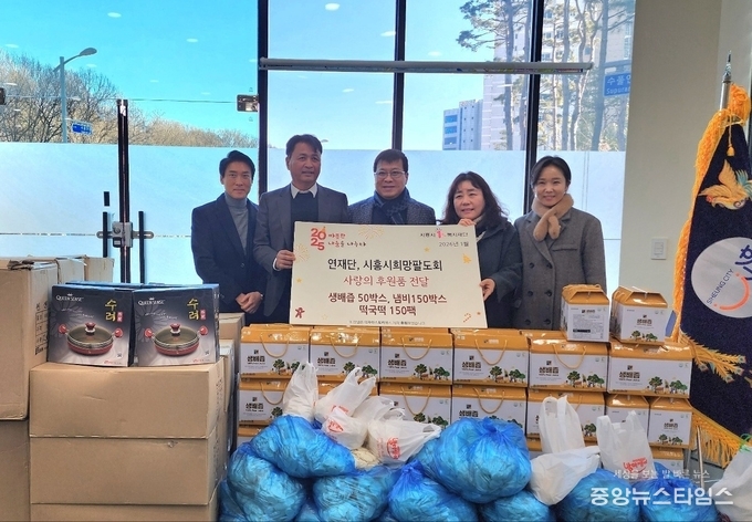 (중앙뉴스타임스 = 방재영 기자) 연재단(이사장 이동우)과 시흥시희망팔도회(회장 신철균)는 지난 5일 배즙 50박스, 떡국떡 150봉, 냄비 150개를 시흥시1%복지재단에 기부하는 전달식을 진행했다.