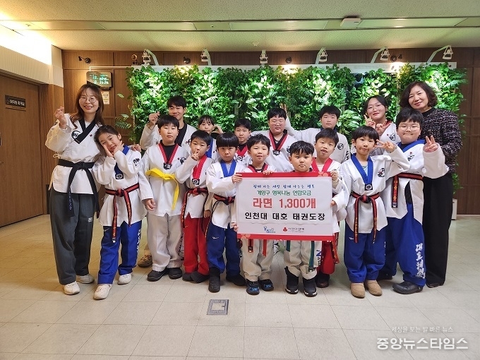(중앙뉴스타임스 = 방재영 기자) 인천 계양구는 지난 9일 계산동에 위치한 인천대 대호 태권도장(관장 최소희)으로부터 라면 1300개를 기탁 받았다고 밝혔다.