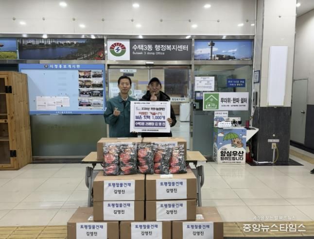 수택3동 행정복지센터 홍종민 동장은 “지역사회를 위해 이웃사랑을 몸소 실천해 주신 김영진 통장님께 깊이 감사드린다”라며 “기탁해 주신 핫팩은 도움이 필요한 취약계층에 소중히 전달해 겨울철 체온 유지와 건강 보호에 활용하겠다”라고 전했다.