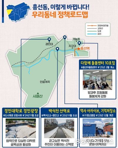 한편, ‘우리동네 정책로드맵’은 15개 동별 정책과 현안을 체계적으로 정리해 시민 생활의 변화를 공유하고, 주민과의 소통을 강화하기 위한 기획으로, 다음 회차로 녹양동편을 안내할 예정이다.