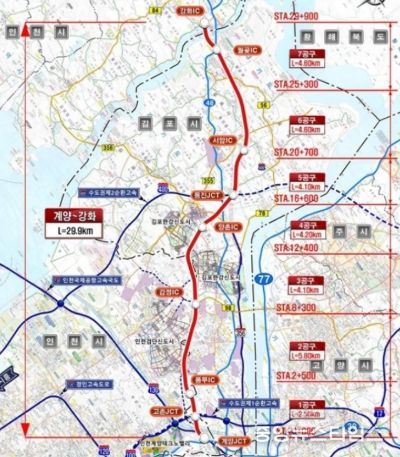 (중앙뉴스타임스 = 방재영 기자) 김포시는 국토교통부와 한국도로공사가 추진 중인 계양~강화 고속도로 건설사업이 현재 실시설계 완료, 사업 본격화 예정이라고 밝혔다. 시는 김포시민의 교통편익 극대화를 목표로 관계기관과 협의에 끝까지 적극 나서며 고속도로 건설로 인한 도시 단절과 생활환경 저해를 최소화하는 한편 도시연결성 확보에 총력을 다한다는 방침이다.