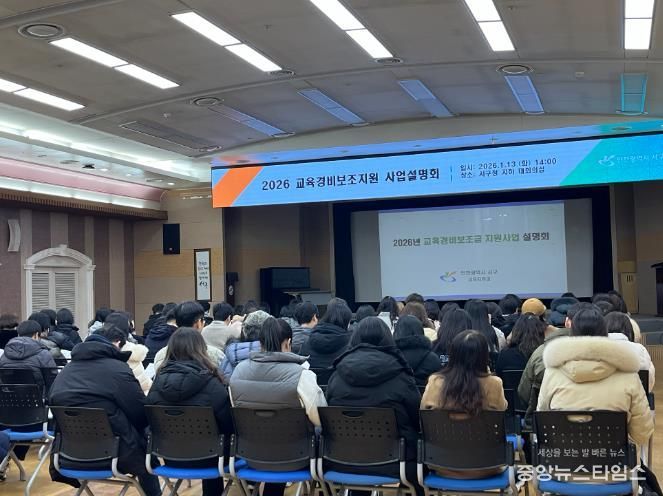 (중앙뉴스타임스 = 방재영 기자) 인천광역시 서구는 2026년도 교육경비 보조지원 사업의 원활한 추진을 위해 관내 초·중·고·특수학교 교육경비사업 담당 실무자 84명이 참석한 가운데 ‘2026년 교육경비보조지원 사업설명회’를 개최했다.