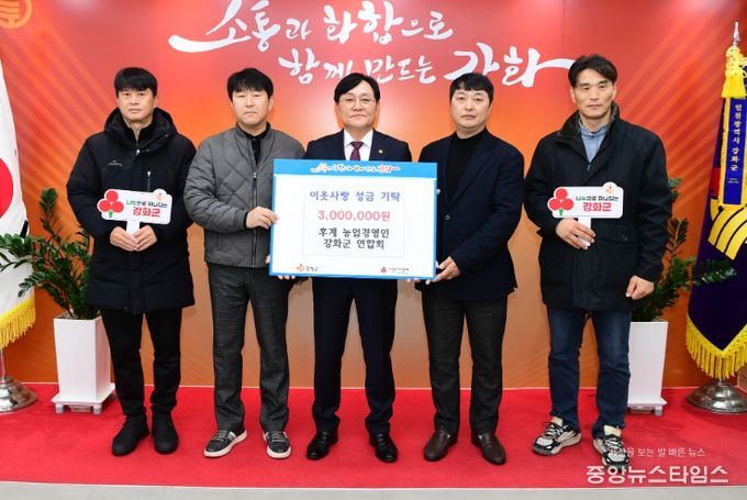 후계농업경영인 강화군연합회 관계자는 “지역농업의 미래를 이끌어가는 단체로서 지역사회와 함께하는 나눔을 실천하고자 성금을 기탁하게 됐다”며 “앞으로도 이웃과 함께 성장하는 농업인 단체가 되도록 노력하겠다”고 전했다.