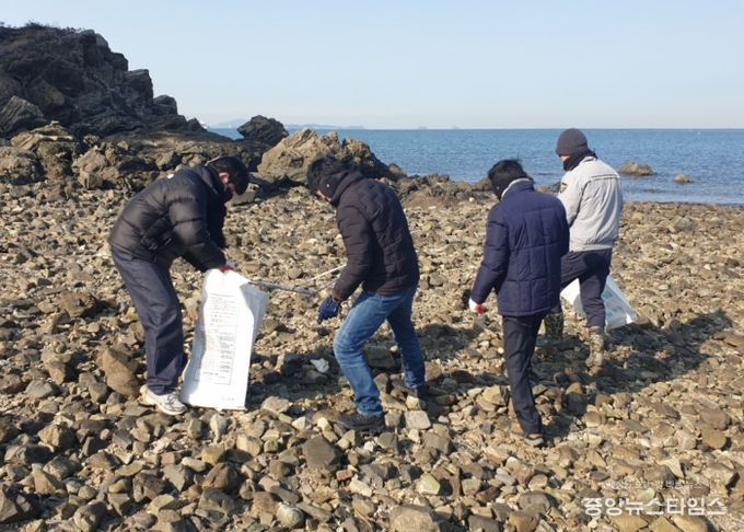 이번 방제작업은 지난 12일 국화도 인근 해상에서 발생지 미상의 오염물질이 조류를 따라 일부 해안가로 유입됨에 따라 실시됐다.