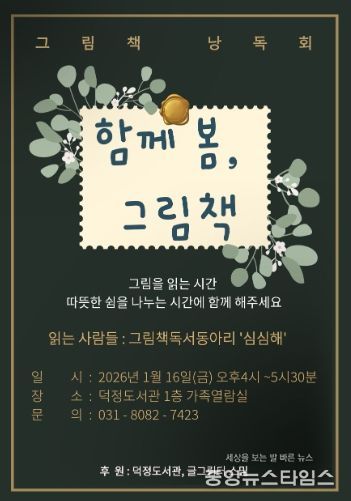 (중앙뉴스타임스 = 김수진 기자) 양주시 덕정도서관은 오는 1월 16일 16시부터 17시 30분까지, 도서관 1층 가족열람실에서 그림책 낭독회 '함께 봄, 그림책'을 운영한다.