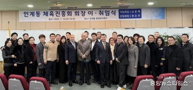 (중앙뉴스타임스 = 방재영 기자) 수원시 팔달구 인계동 체육진흥회는 지난 14일, 인계동 행정복지센터에서 주요 내빈과 관계자 등 50여 명이 참석한 가운데 ‘인계동 체육진흥회장 이‧취임식’을 성황리에 개최했다.