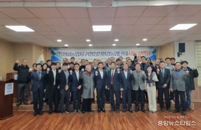 (중앙뉴스타임스 = 방재영 기자) 농림축산식품부와 평창군, 지역 농업인과 전문가들이 참여한 ‘평창 친환경 특성화농업지구 조성 관련 현장의견 수렴 행사’가 1월 15일, 평창군 용평면 장평리 소재 금송회관에서 열렸다.
