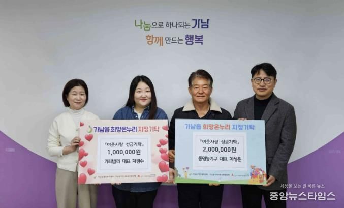 (중앙뉴스타임스 = 방재영 기자) 여주시 가남읍 행정복지센터은 지난 15일 관내 사업체인 동명농기구와 카페 발리에서 지역 내 취약계층을 위한 이웃돕기 성금을 기탁했다고 밝혔다.