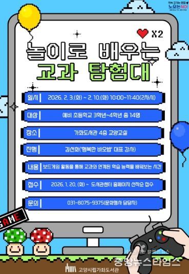 (중앙뉴스타임스 = 이광운 기자) 고양특례시 가좌도서관은 2월 3일부터 방학특강 프로그램 ‘놀이로 배우는 교과 탐험대’을 운영한다.