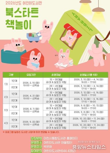 (중앙뉴스타임스 = 이광운 기자) 이천시 어린이도서관이 2026년 영유아와 양육자를 위한 ‘북스타트 책놀이’ 프로그램을 운영한다고 16일 밝혔다.