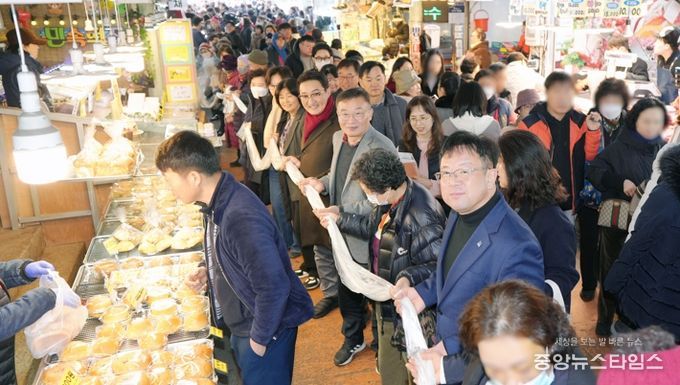(중앙뉴스타임스 = 방재영 기자) 수원 못골종합시장이 새해를 맞아 16일 전통시장 상인과 시민이 함께하는 ‘가래떡 나눔 행사’를 열었다.