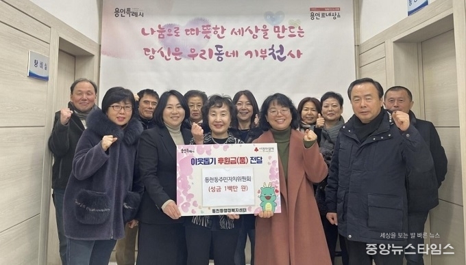 동천동은 15일 주민자치위원회에서 어려운 이웃을 위해 준비한 성금 100만 원을 기탁했다고 밝혔다.