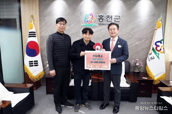 (중앙뉴스타임스 = 방재영 기자) 만나청소(대표 김동식)는 19일 홍천군청을 방문해 어려운 이웃돕기 성금 100만 원을 기탁했다.