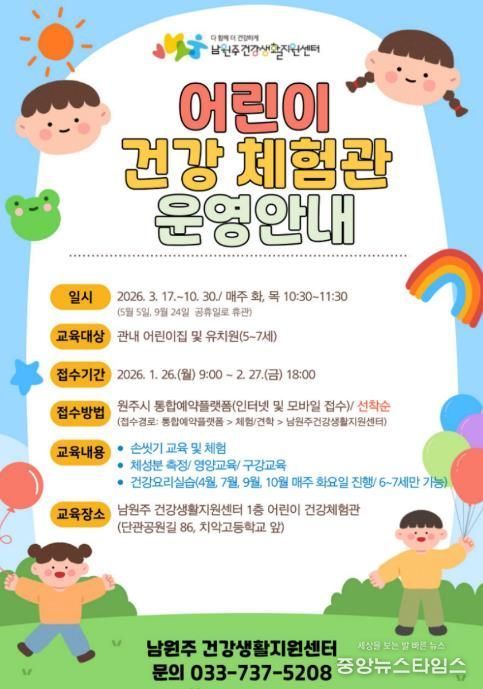 (중앙뉴스타임스 = 방재영 기자) 남원주건강생활지원센터는 손 씻기, 영양 등을 주제로 미취학 아동들에게 건강 교육을 제공하는 ‘어린이 건강체험관’을 운영하고 있다.
