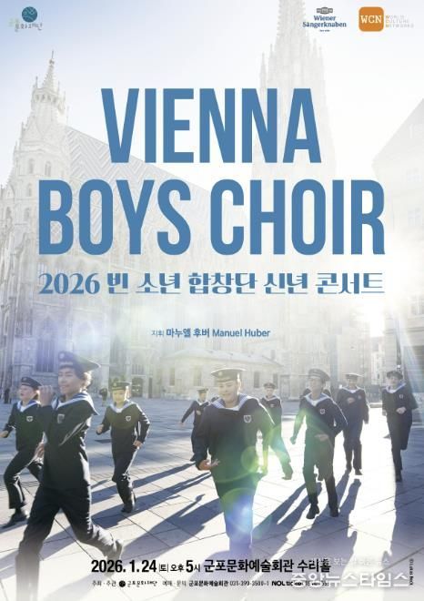 (중앙뉴스타임스 = 방재영 기자) 군포문화예술회관은 2026년 새해를 여는 기획공연으로, 500년의 역사를 지닌 세계 최고의 소년합창단 “빈 소년 합창단(Wiener Sängerknaben)”의 내한공연 '2026 빈 소년 합창단 신년 콘서트'를 오는 1월 24일(토) 오후 5시, 수리홀에서 개최한다.