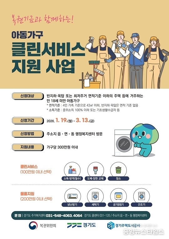 (중앙뉴스타임스 = 방재영 기자) 이천시가 열악한 주거 환경에 놓인 아동 가구의 건강과 안전을 지키고, 아동 친화적 주거복지를 위해 ‘2026년 아동가구 클린서비스 사업’을 추진한다고 20일 밝혔다.