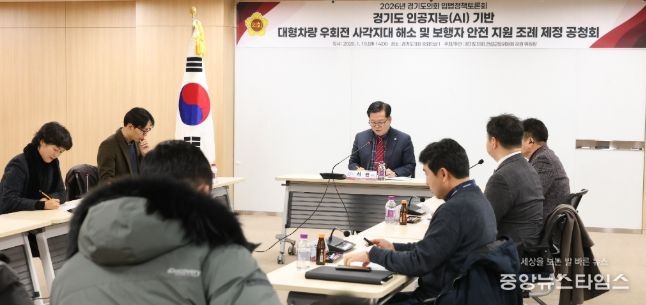 (중앙뉴스타임스 = 방재영 기자) 경기도의회 건설교통위원회 허원 위원장(국민의힘·이천2)은 19일 경기도의회 중회의실에서 '경기도 인공지능(AI) 기반 대형차량 우회전 사각지대 해소 및 보행자 안전 지원 조례' 제정을 위한 공청회를 개최했다.