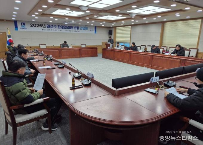 (중앙뉴스타임스 = 방재영 기자) 수원시 권선구 환경위생과는 21일 최일선에서 일하는 환경관리원들을 격려하고 애로사항을 청취하고자 ‘환경관리원 간담회’를 개최했다.
