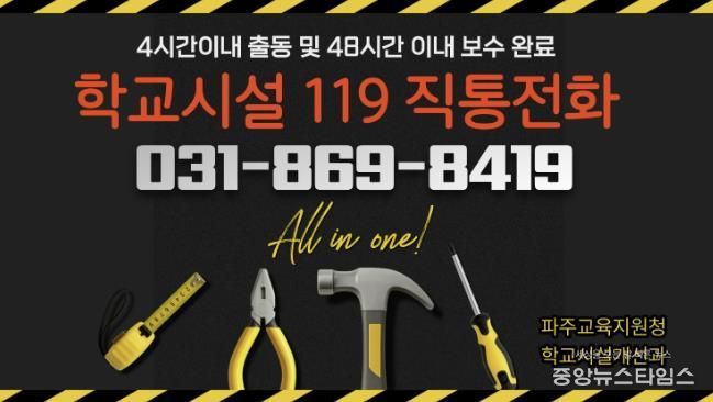 전선아 교육장은 “‘학교시설 119’는 학교가 행정 업무 대신 교육 활동에 전념할 수 있도록 돕는 현장 중심 행정의 핵심”이라며 “파주만의 신속하고 체계적인 시설 관리 모델을 정착시켜 안전한 교육 환경을 만들겠다”고 강조했다.