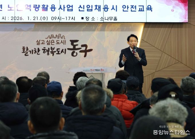 (중앙뉴스타임스 = 방재영 기자) 인천 동구는 지난 21일 구청 소나무홀에서 노인역량활용사업 신입 참여자를 대상으로 안전한 활동 환경 조성과 필수 교육 이수를 위해 안전보건교육을 실시했다고 밝혔다.
