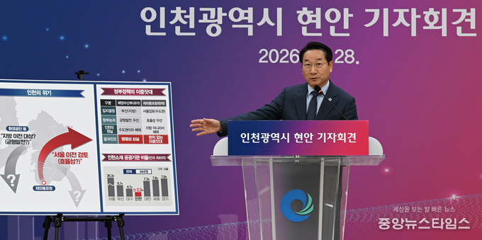 (중앙뉴스타임스 = 방재영 기자) 인천시는 28일 시청 대회의실에서 기자회견을 열고 재외동포청 이전 논란, 공공기관 타 지역 이전, 수도권매립지관리공사 관할권 이관 등 주요 시정 현안에 대한 입장을 밝혔다.