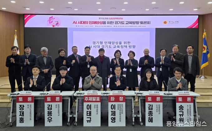 (중앙뉴스타임스 = 방재영 기자) 경기도의회 미래과학협력위원회 이제영 위원장(국민의힘, 성남8)이 28일 경기도의회 대회의실에서 열린 'AI 시대의 인재양성을 위한 경기도 교육방향 토론회'의 좌장을 맡아, 인공지능이 일상이 된 대전환 시대에 부합하는 경기 교육의 새로운 이정표를 제시했다.
