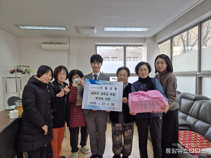 드림교회는 지난 27일 관내 경로당 14개소를 방문해 총 98kg의 떡국 떡을 전달했다.