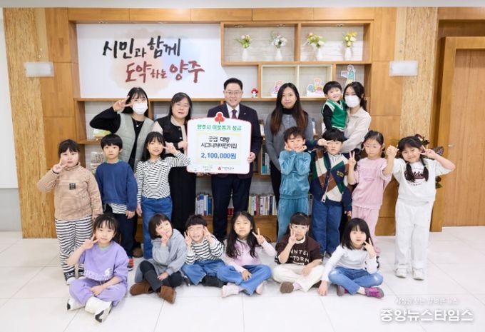 (중앙뉴스타임스 = 방재영 기자) 양주시는 29일 공립 대방시그니처어린이집으로부터 이웃돕기 성금 210만 원을 기탁받았다고 밝혔다.