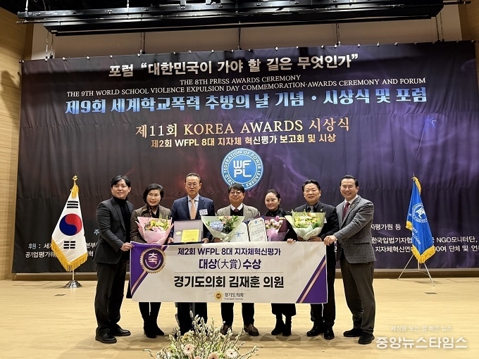 (중앙뉴스타임스 = 방재영 기자) 경기도의회 여성가족평생교육위원회 김재훈 의원(국민의힘, 안양4)은 28일 국회의원회관 대회의실에서 열린 ‘제2회 WFPL 8대 지자체 혁신평가 보고회 및 시상식’에서 대상(大賞)을 수상했다.