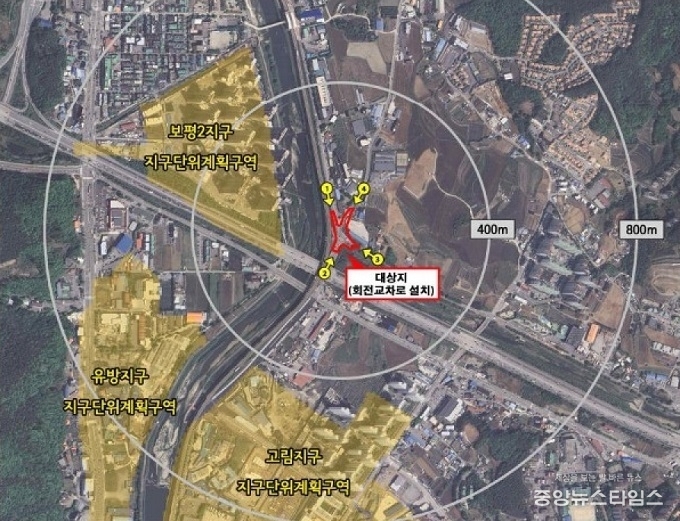 검토 결과 회전교차로 방식이 ‘서비스 수준’(LOS)을 개선하는 것으로 나온 데 따라 회전교차로를 설치하는 것으로 지난해 사업계획을 변경했다.