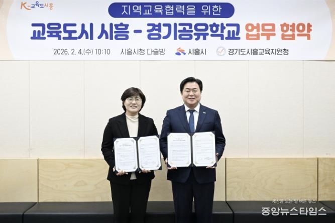 (중앙뉴스타임스 = 방재영 기자) 시흥시는 지난 4일 시청 다슬방에서 시흥교육지원청과 함께 ‘지역교육협력을 위한 교육도시 시흥-경기공유학교’ 업무협약을 맺었다.
