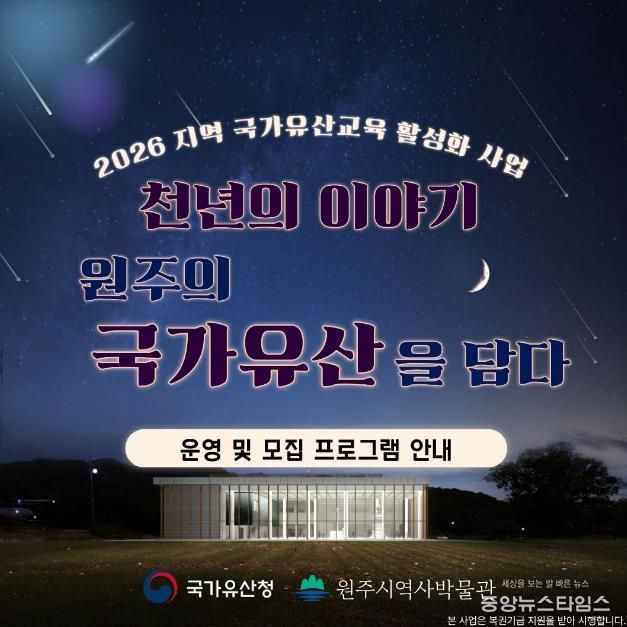 한편 원주시역사박물관은 이번 공모 사업의 일환으로 국가유산교육 교사 연수와 강사 양성 교육을 진행하고, 국가유산교육 교수학습 자료 및 교육프로그램 제작 연구 용역도 추진한다. 이를 통해 지역 거버넌스를 구축하고, 향후 국가유산 교육프로그램 운영의 방향성을 정립할 계획이다.