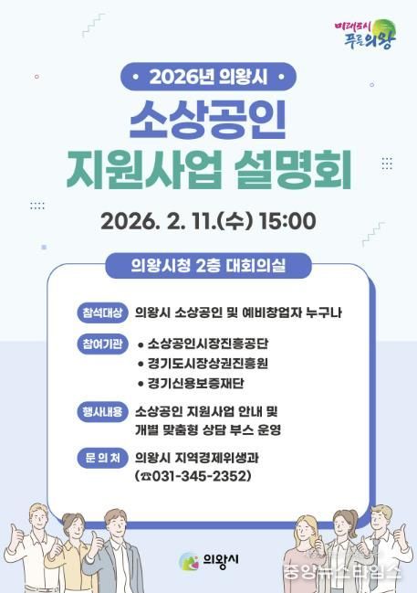 (중앙뉴스타임스 = 방재영 기자) 의왕시가 2월 11일 오후 3시, 시청 대회의실에서 ‘2026년 소상공인 지원사업 설명회’를 개최한다.