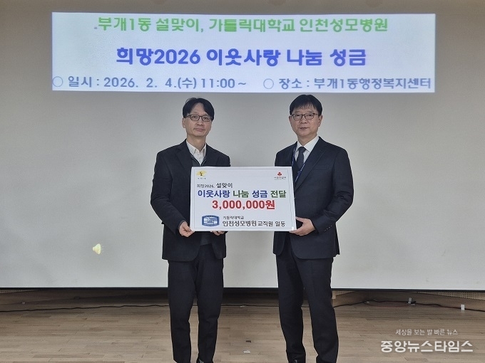 이현표 부개1동장은 “매년 명절마다 따뜻한 온정을 전해 주시는 인천성모병원에 깊이 감사드린다”며 “기탁받은 성금은 기초생활수급자 등 어려운 이웃에게 소중히 전달하겠다”고 밝혔다.