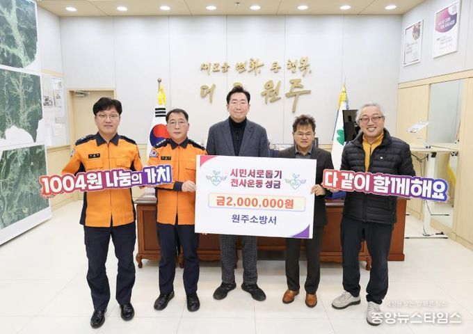 (중앙뉴스타임스 = 방재영 기자) 원주소방서는 지난 5일 원주시청을 방문해 시민서로돕기 천사운동 후원금 200만 원을 전달했다.