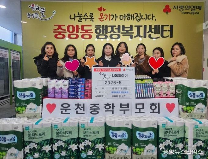 백경희 중앙동장은 “지역사회를 위해 이웃사랑을 실천해 주신 운천중학교 학부모회에 깊이 감사드린다”며 “기탁해 주신 물품은 정성 어린 마음을 담아 도움이 필요한 어르신들께 소중히 전달하겠다”고 밝혔다.
