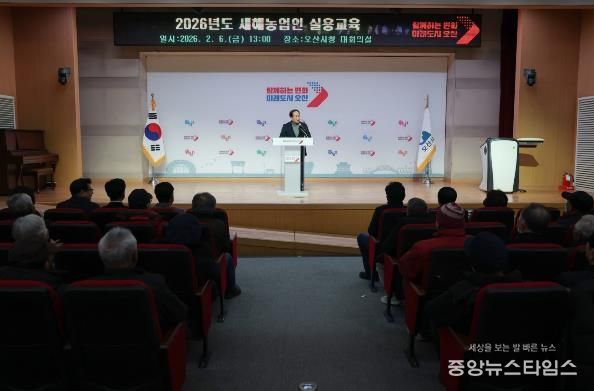 (중앙뉴스타임스 = 이광운 기자) 오산시는 지난 6일 관내 농업인 250여 명을 대상으로 ‘2026년 새해농업인 실용교육’을 개최하고, 영농기술과 농정 정보를 제공하며 교육을 성공적으로 마무리했다고 밝혔다.