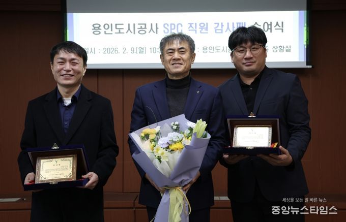 이번 감사패 전달식은 용인시 처인구 원삼면과 이동읍 일대의 사업 현장에서 묵묵히 실무를 수행하며, ‘용인 반도체 클러스터 조성 및 소부장 (소재·부품·장비) 기업 유치’라는 목표 달성에 기여한 SPC 직원들의 노고를 격려하기 위해 마련됐다.