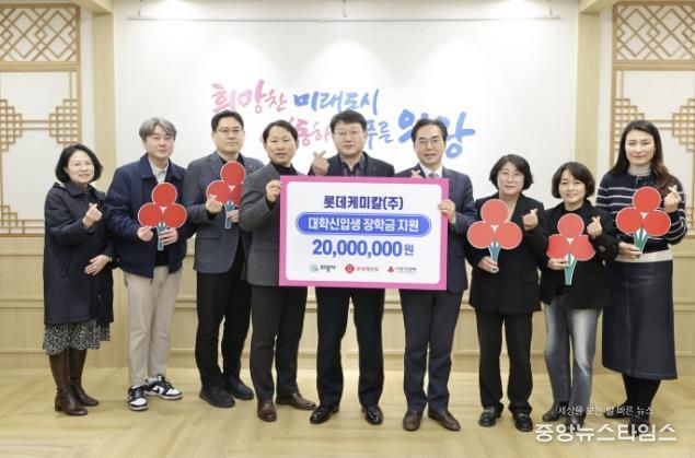 이번 장학금은 롯데케미칼 임직원이 매월 급여에서 자율적으로 기부한 금액에 회사가 동일한 금액을 더하는 ‘매칭그랜트’ 방식으로 조성됐으며, 롯데케미칼 임직원들의 따뜻한 마음이 담긴 후원금은 각 100만 원씩, 대학 신입생 20명에게 지원될 예정이다.