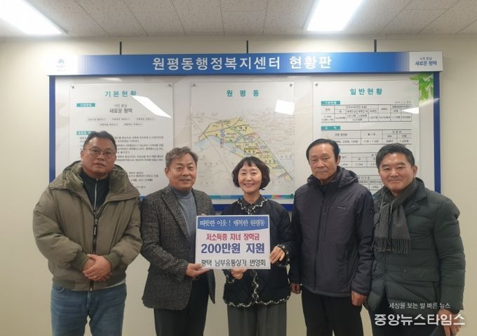김재신 평택시 원평동장은 “모두가 어려운 시기에도 불구하고 주변 이웃들에게 온정을 베풀어 주시는 평택 남부유통상가 번영회 회장님과 회원님께 감사드린다”며 “민관이 협력해 관내 어려운 청소년들에게 희망을 줄 수 있도록 최선을 다하겠다”고 말했다.