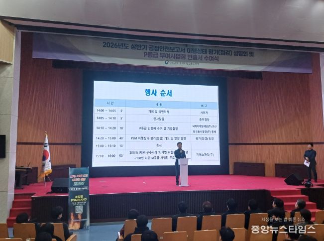 (중앙뉴스타임스 = 방재영 기자) 중부지방노동청 수도권 중대산업사고 예방센터는 2월 11일 오후 2시부터 안산시 단원구 소재 중소벤처기업연수원 대강당에서 '2026년 상반기 공정안전관리(PSM) 이행상태 평가(점검) 사업 설명회'를 개최했다.