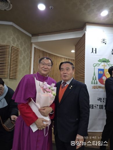 (중앙뉴스타임스 = 방재영 기자) 수원특례시의회 이재식 의장은 11일 장안구 정자동 주교좌성당에서 열린 천주교 수원교구 곽진상 제르마노 주교 서품식에 참석해 신임 보좌주교의 서품을 축하했다.