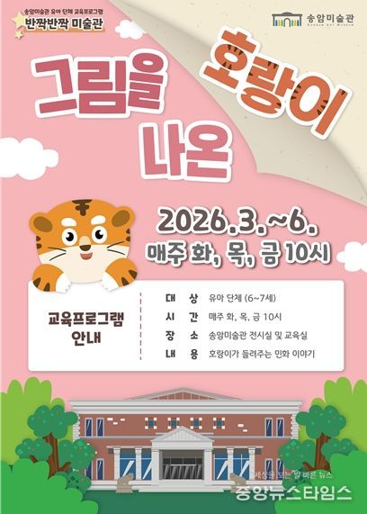 (중앙뉴스타임스 = 방재영 기자) 인천광역시 송암미술관은 오는 3월부터 6월까지 6~7세 유아 단체를 대상으로 교육 프로그램 '그림을 나온 호랑이'를 운영한다고 12일 밝혔다.