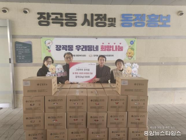 최명환 그린마트 장곡점 대표는 “지난해 기부한 잡곡이 관내 취약계층 이웃들에게 실질적인 도움이 됐다는 이야기를 듣고 큰 보람을 느꼈다”라며 “앞으로도 장곡동 행정복지센터와 긴밀히 협력해 도움이 필요한 이웃들을 지속적으로 지원하고, 지역사회와 상생하며 성장하는 기업이 되도록 노력하겠다”라고 말했다.