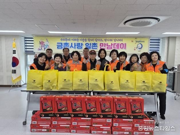 (중앙뉴스타임스 = 방재영 기자) 파주시 금촌1동 금촌사랑협의체(지역사회보장협의체)는 지난 11일 ‘금촌사랑 일촌 만남데이’대상자들에게 각각 밑반찬과 20개들이 라면 1상자를 전달했다.