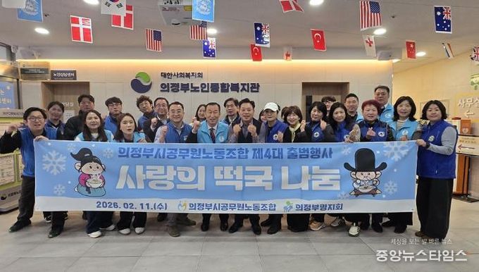 (중앙뉴스타임스 = 방재영 기자) 의정부시공무원노동조합이 출범식을 대신해 지역 어르신을 위한 ‘사랑의 떡국 나눔 행사’를 열고 제4대 활동의 시작을 알렸다.
