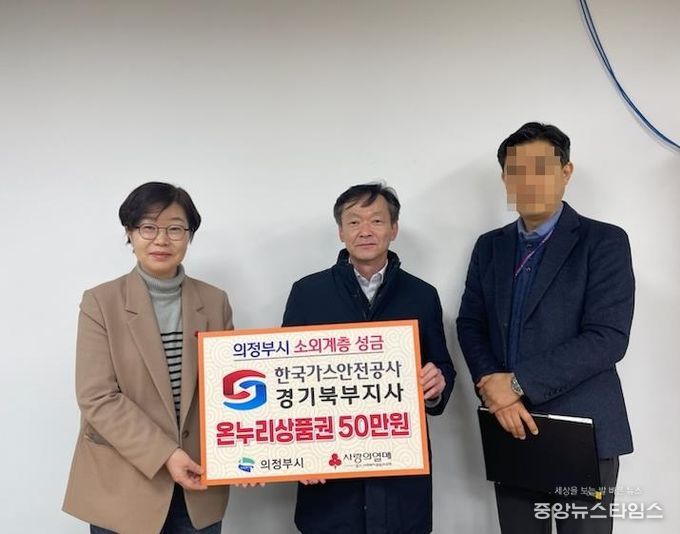 (중앙뉴스타임스 = 방재영 기자) 의정부시는 11일 한국가스안전공사 경기북부지사가 장암종합사회복지관에 온누리상품권(1만 원권 50매)을 지정 기탁하며 ‘100일간 사랑릴레이 배턴 잇기’에 동참했다고 밝혔다.